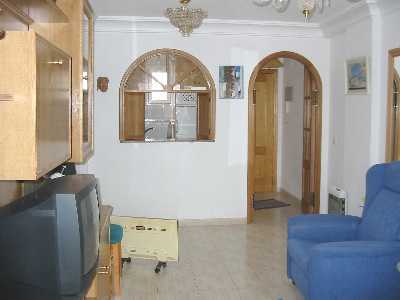 4/5-Apartamento de dos dormitorios, uno con cama matrimonial otro con dos camas individuales , un baño, cocina americana equipada de cuatro fuegos electronicos y micro ondas.Salon comedor con sofa cama y televisor, terraza con vistas al mar o la piscina